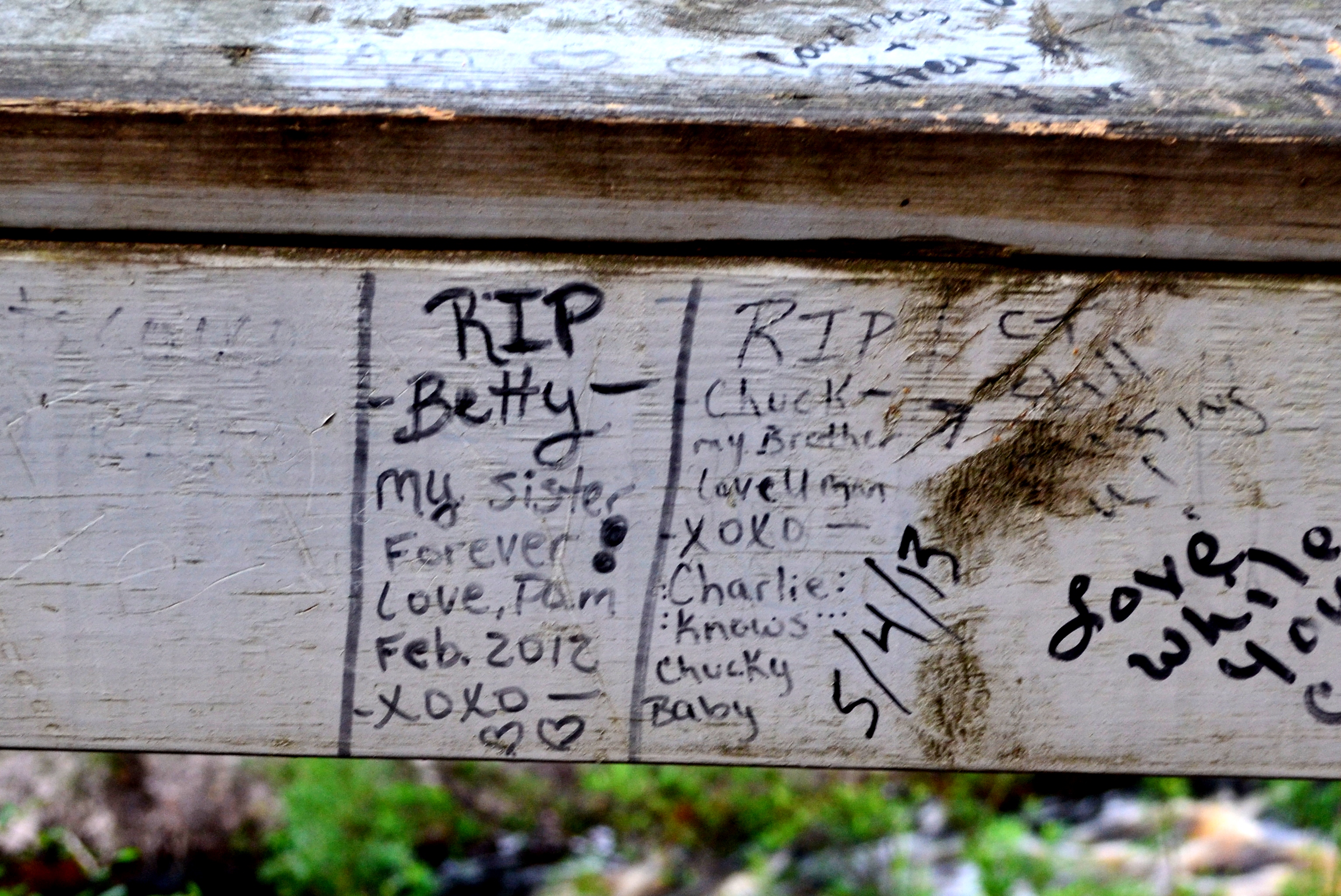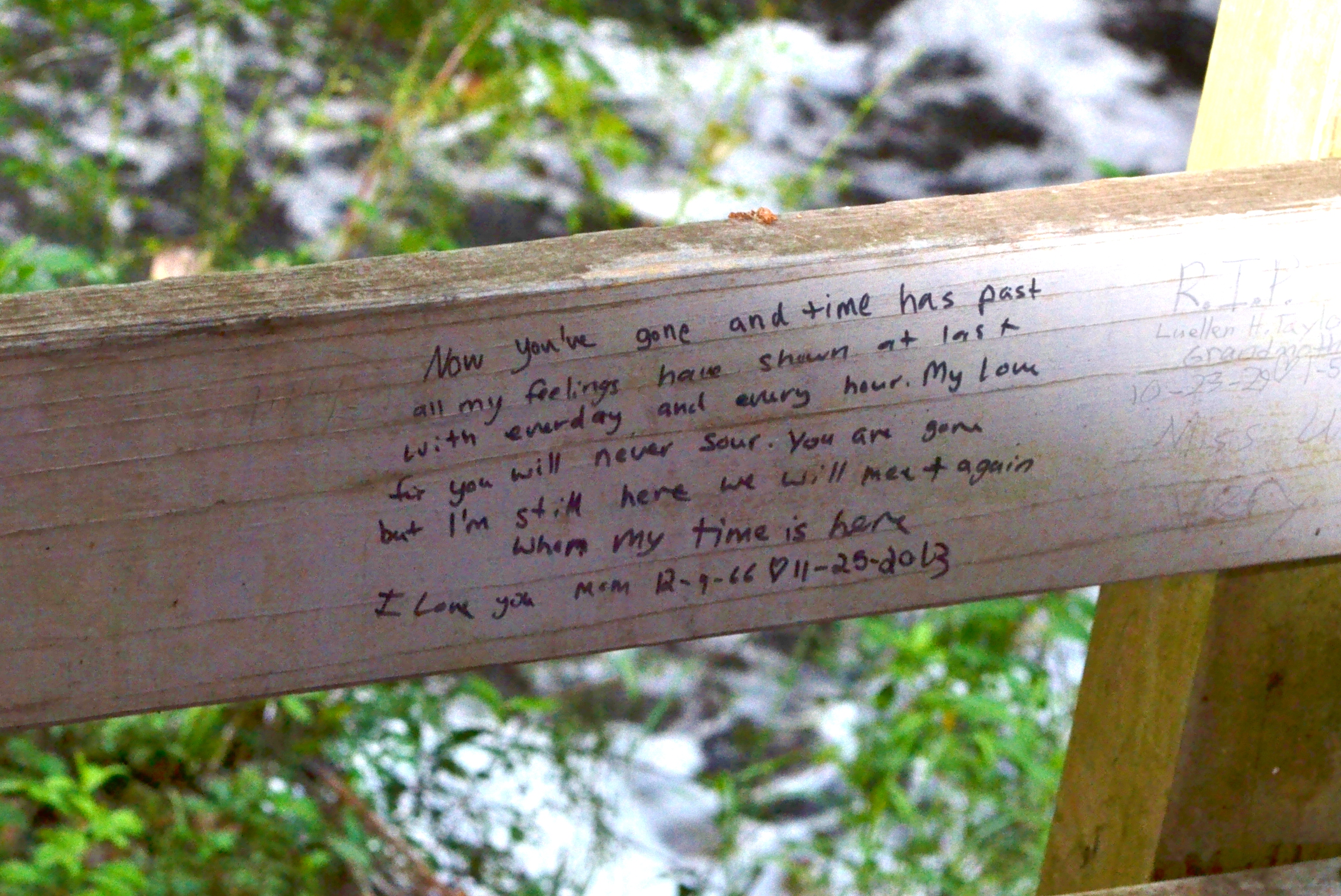 I am fascinated by how people choose to remember their loved ones… I saw these while walking on a boardwalk at Falling Creek Falls…